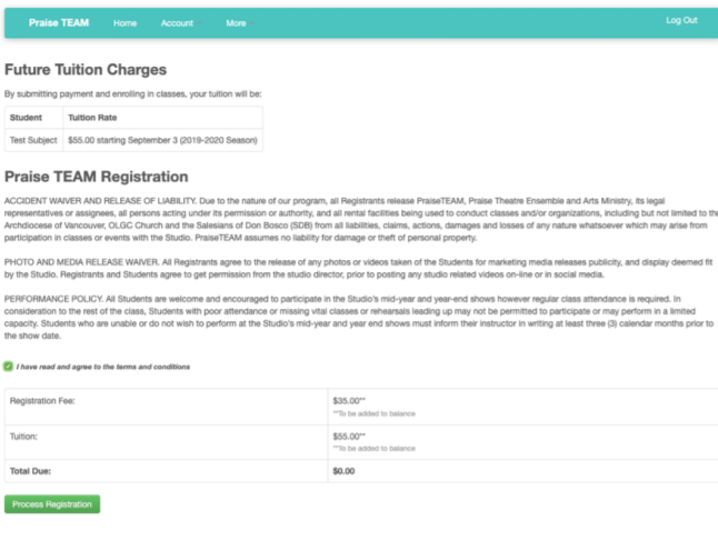 You will be directed to this page that shows your order. There are also important terms and conditions that must be read carefully. Once read through, click on the check box claiming that you have read the terms and conditions and click on ‘Process Registration’.